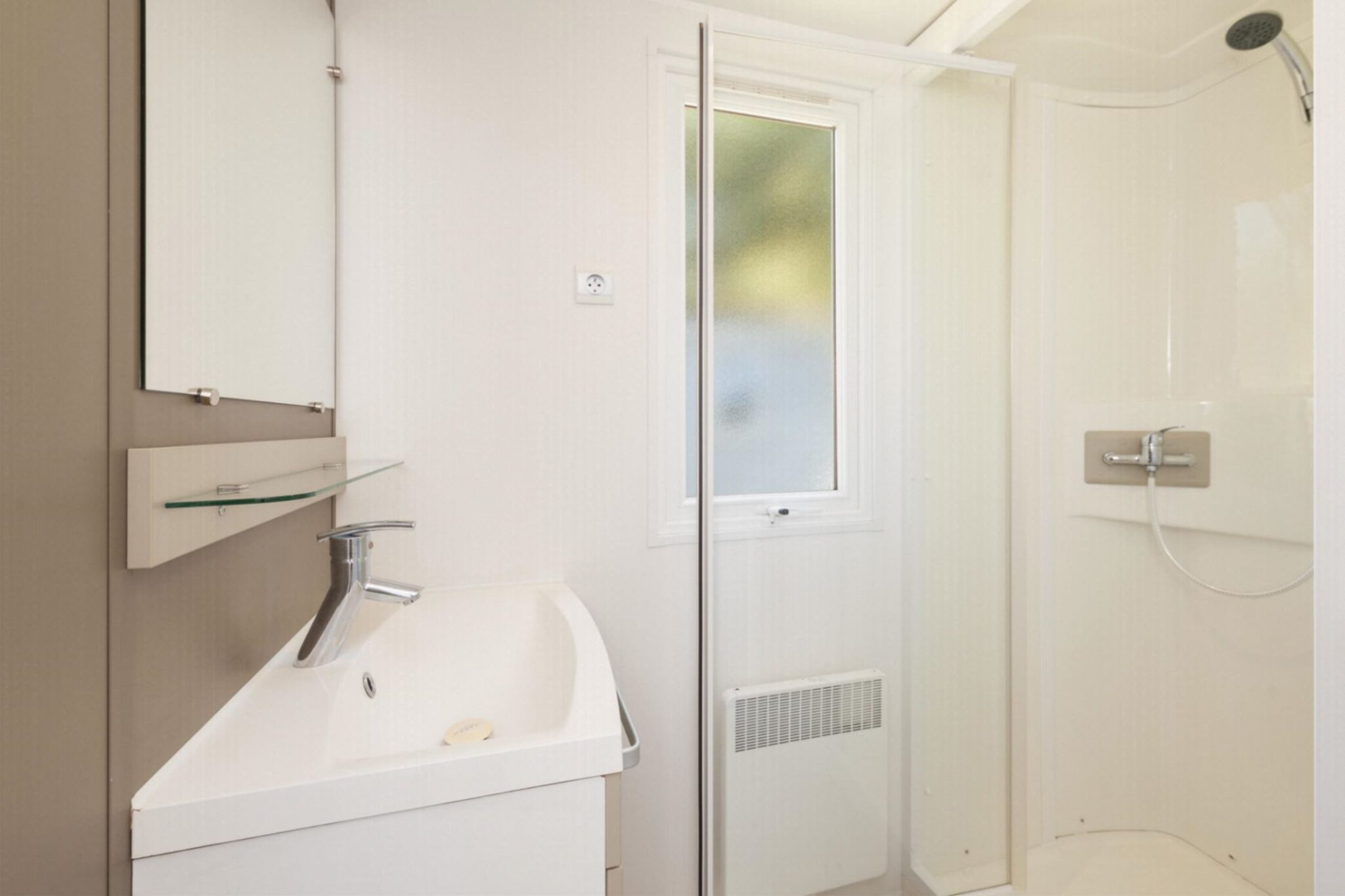 Sanitaire : salle d’eau avec douche et lavabo, dans la chambre et WC séparé.