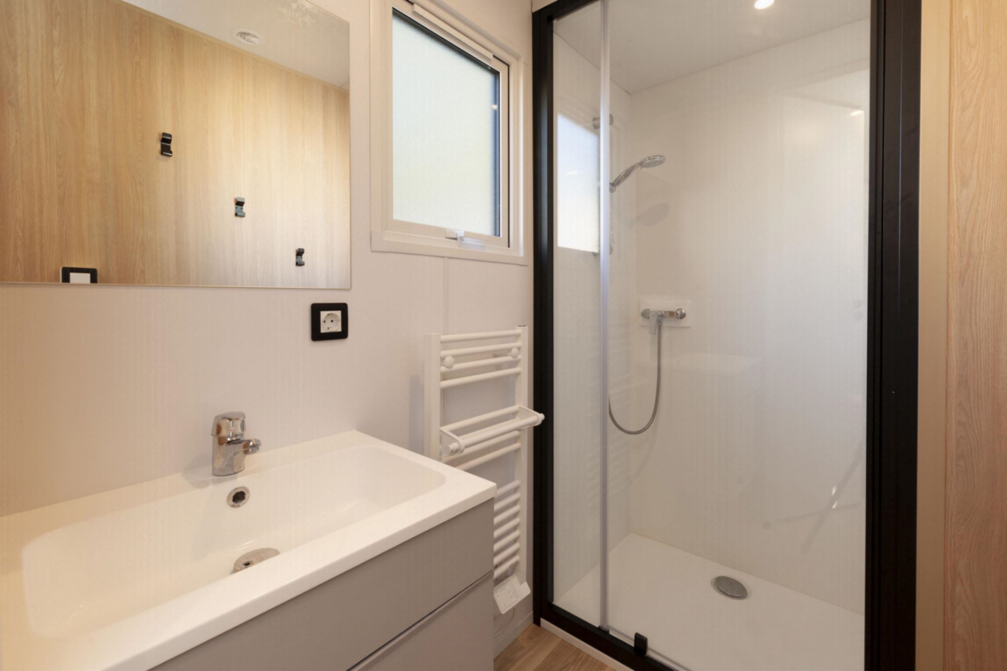 Sanitaire : salle d’eau avec douche et lavabo et WC séparé.